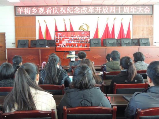 12月18日上午,庆祝改革开放40周年大会在人民大会堂举行。为让全乡党员干部群众顺利收看改革开放40周年大会,羊街乡及早安排布置,在乡机关办公楼会议室、各村社区办公室、党员活动室设置了集中收看点,并提前安排各村社区检修线路,保障线路畅通。18日上午,乡机关党员领导干部及各村社区的党员干部群众共计500余人在各集中收看点收看了大会。