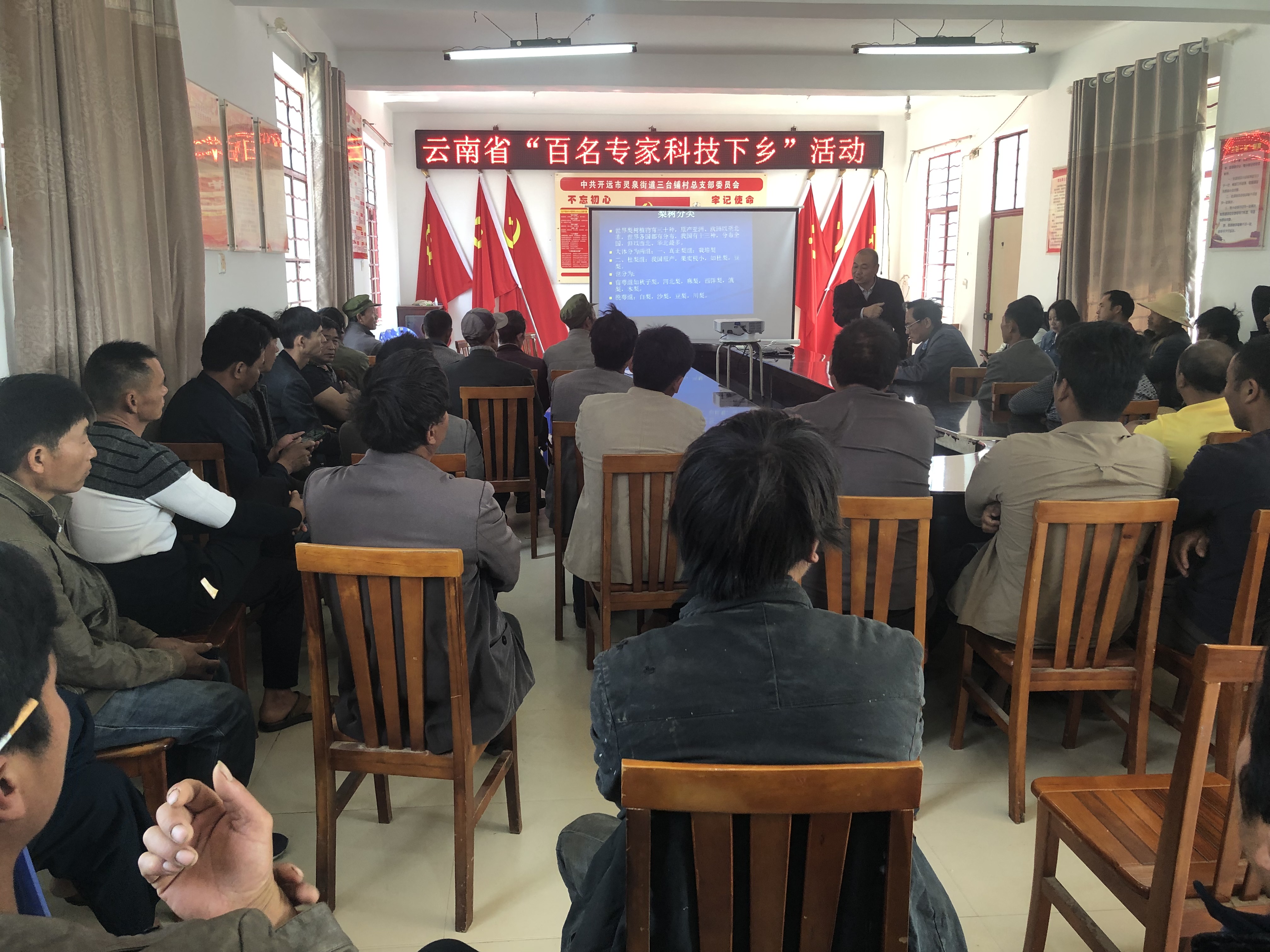 3月20日,由市科协牵头的云南省“百名专家科技下乡”活动走进灵泉街道办事处三台铺村委会,云南农业大学园艺系武绍波教授为葫芦梨种植户做梨树良种和栽培技术培训,灵泉街道三台铺村委会田房等6个村民小组90余名葫芦梨种植大户、建档立卡贫困户参加培训。
