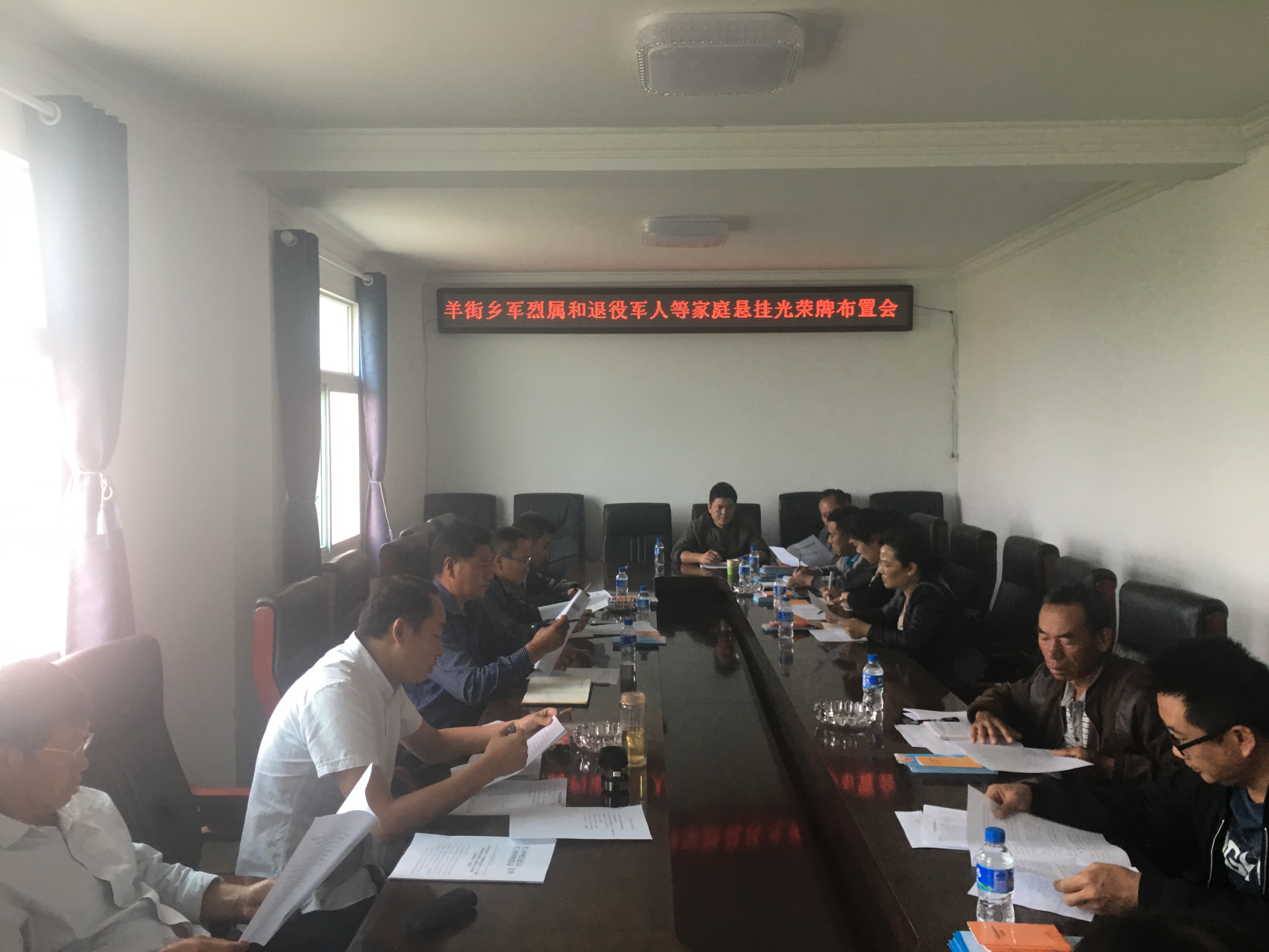 为弘扬拥军优属优良传统,营造爱国拥军、尊崇军人的浓厚社会氛围,安排部署好悬挂光荣牌工作,4月2日,羊街乡召集各村委会(社区)民政联络员,召开军烈属和退役军人等家庭悬挂光荣牌布置会。
