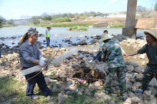 为贯彻落实“河长制清河行动”工作要求,推进生态文明先行示范区建设,保护江河湖库、生态环境,小龙潭镇党委、政府于4月18日下午,组织全镇干部职工、青年人才党支部党员、社区党员、应急民兵、巾帼连心志愿者服务队及青年志愿者服务队共70余人前往我镇辖区南盘江段开展“清河行动”。活动中,镇党委、政府领导班子分别带领五个清河行动小组成员分工协作、积极参与,先后对沿河两岸存在的乱占乱建、乱围乱堵、乱采乱挖、乱倒乱排、乱捕滥捞等突出问题开展集中整治,确保我镇辖区南盘江段河道的水净坡洁。此次活动调用挖机1台、清运车辆1辆,清运各类垃圾6余吨,核实污水排入口2处并登记在册。