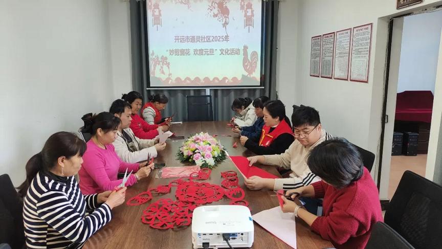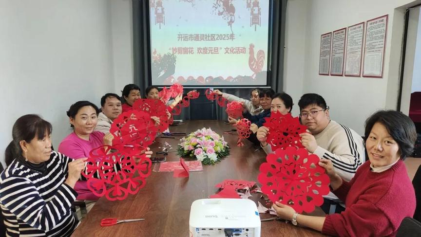 12月31日,通灵社区开展“妙剪窗花 欢度元旦”文化活动。在老师的指导下,大家纷纷拿起剪刀和彩纸,从寓意吉祥的“福”字到憨态可掬的生肖动物,从精致细腻的窗花到造型独特的新年装饰,大家充分发挥自己的想象力和创造力,用灵巧的双手将一张张彩纸变成了饱含新年祝福与美好憧憬的剪纸作品。