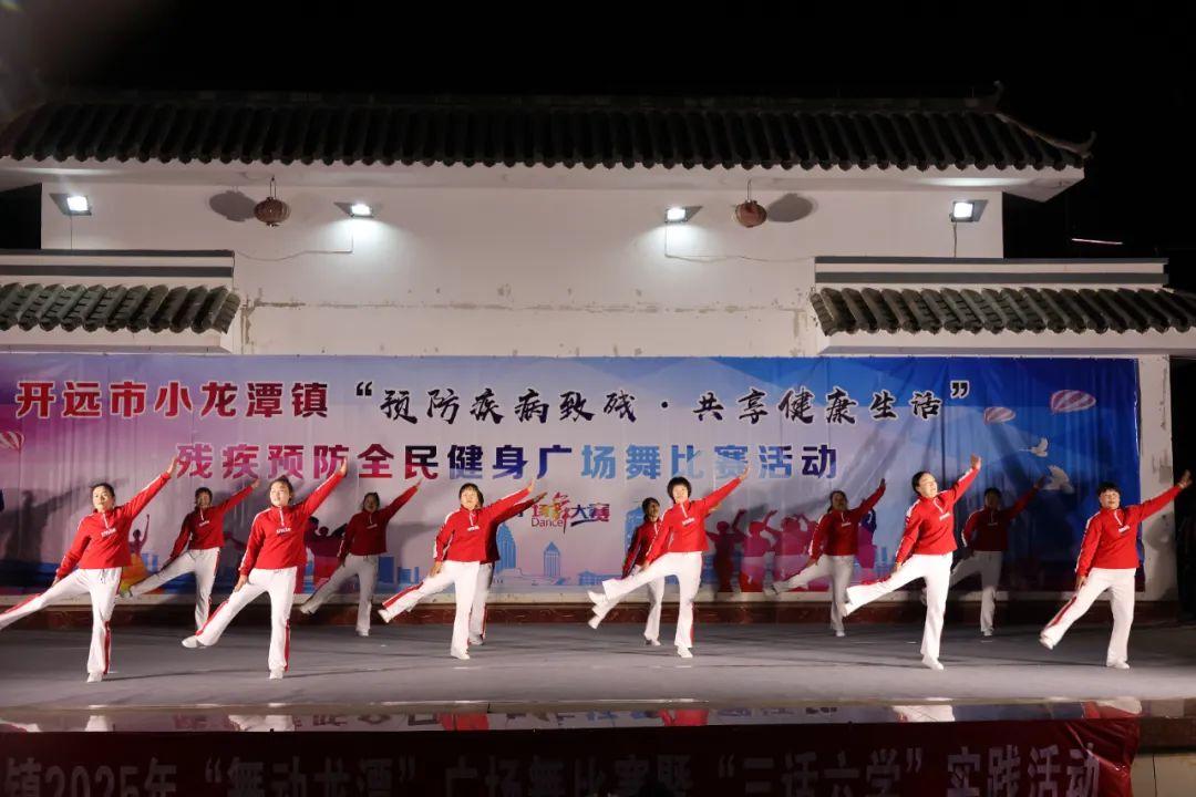 全民健身展风采,美好生活笑颜开。为做好残疾预防核心知识宣传工作,依托“全民健身活动”,推动全镇残疾预防工作深入开展,持续传递残疾预防深刻理念和丰富群众文化生活,近日,小龙潭镇组织在集镇龙源广场举办2025年“预防疾病致残·共享健康生活”残疾预防全民健身广场舞比赛暨“三话六学”实践活动。 来自全镇7个村(社区)的文艺队伍同台竞技,一展风采,赛出水平、赛出风格、赛出成绩。