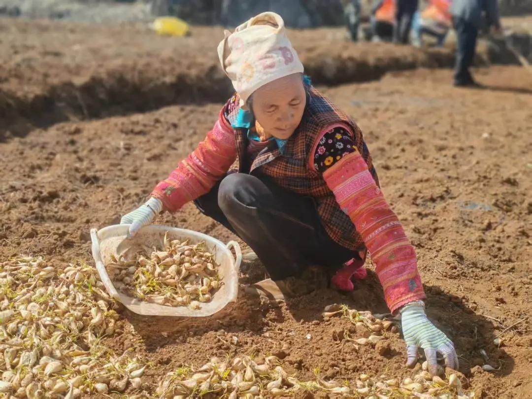 此次助农春耕活动,全乡共出动70名志愿者深入田间,仅用一天时间就高质量完成了25余亩藠头种植。