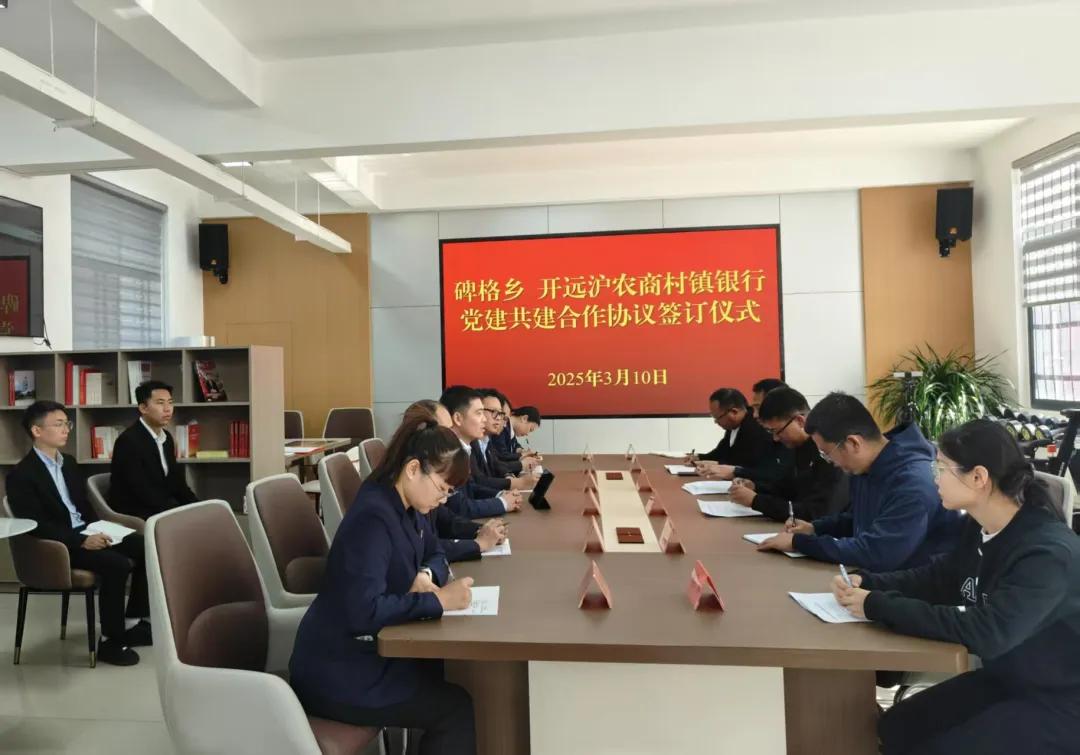随后,碑格乡党委与开远沪农商村镇银行党支部正式签订了党建共建合作协议,双方将以党建为引领,进一步加强合作交流,实现组织联建、资源共享、服务群众、品牌共创,为推动双方高质量发展注入新兴动力。