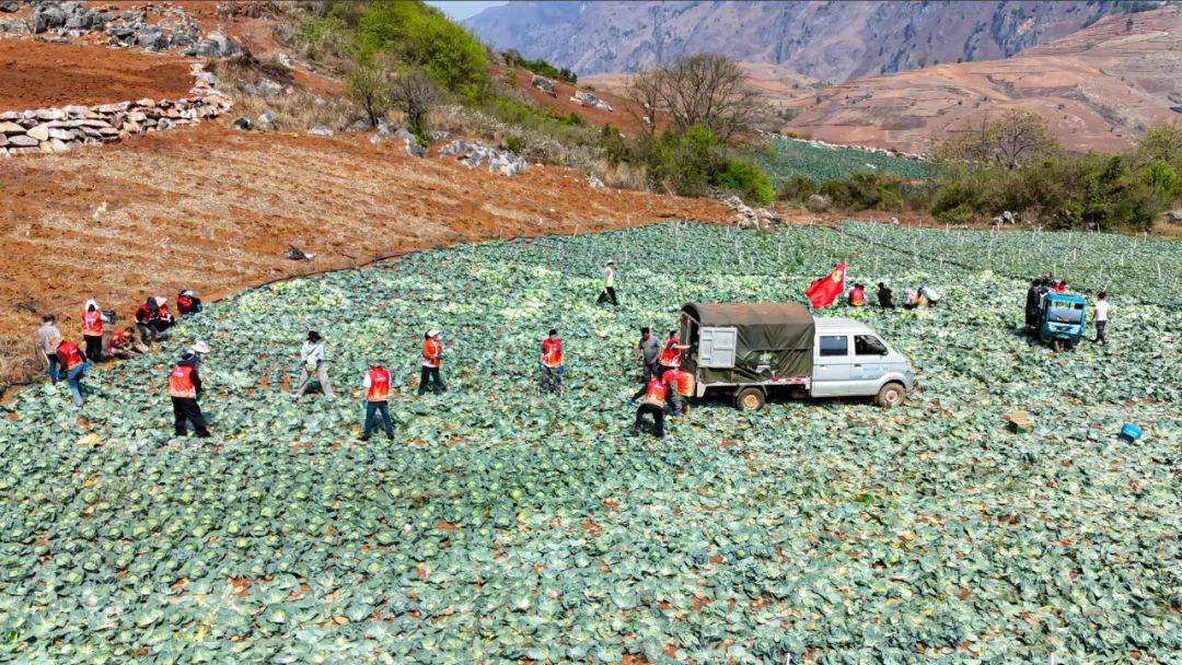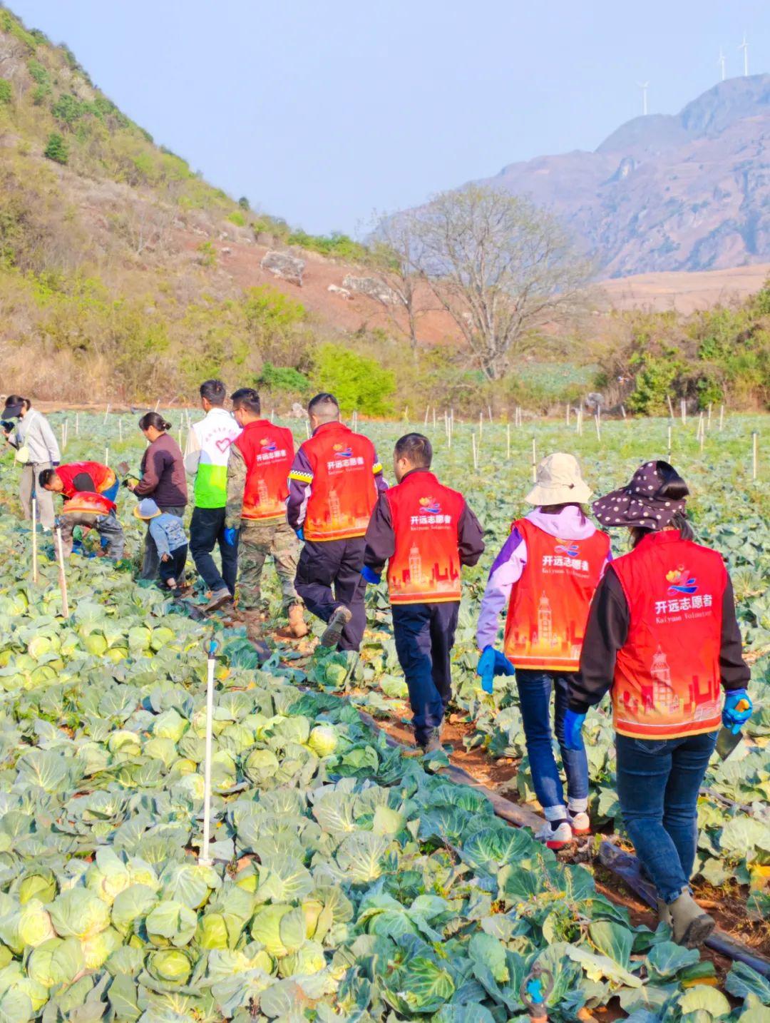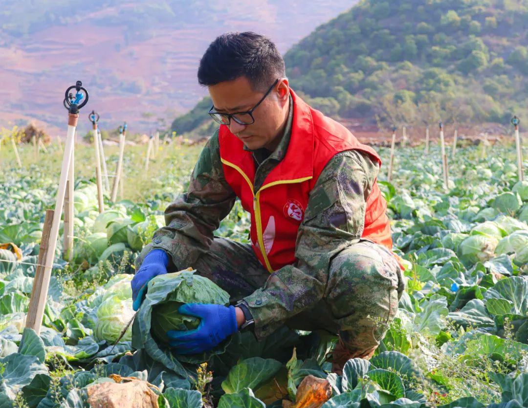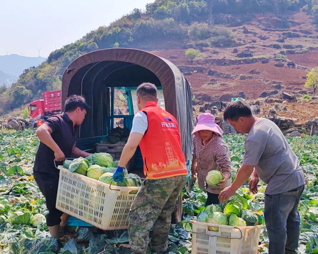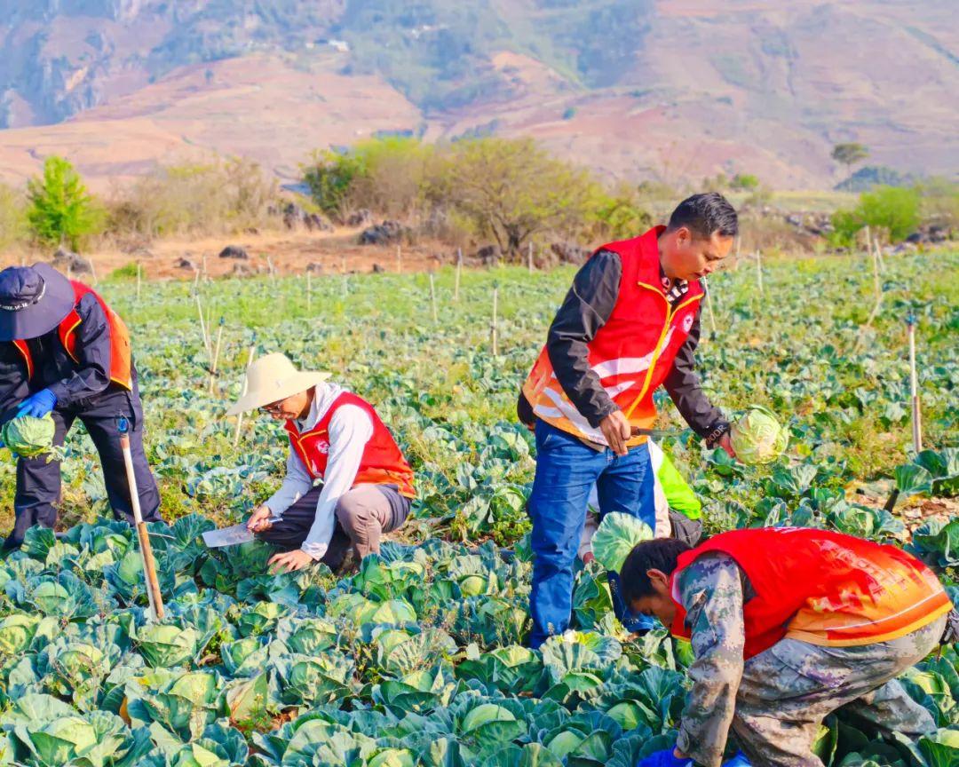 活动前,羊街乡采取“村党总支摸排+确定帮扶对象+上报乡党委+乡党委组织党员干部”的方式,确定帮扶对象为大美伍村王华户,其家中种植“小铁头”(甘蓝)、松花菜等农作物59亩,家庭劳动力短缺。3月25日,乡机关党员干部走进村民王华家的田里,和农户正勠力同心一起采收“小铁头”(甘蓝),“志愿红+甘蓝绿”描绘出一幅忙碌热闹的美好“春收图”。