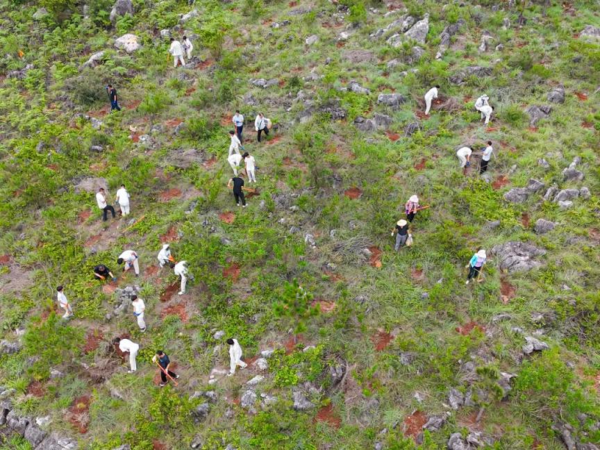 经过大家的努力,不一会儿就顺利完成3000余株湿地松的栽种工作,一株株湿地松在红路头小坡上“安家落户”,原本略显荒芜的山坡渐渐呈现出一片生机勃勃的绿色景象。