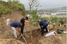 活动现场,大家热情高涨,分工有序。林业技术人员示范种植方法、讲解种植要点;街道党政领导班子率先垂范,带头挥锹铲土;干部职工协调配合,扶苗填坑,提桶浇水。经过4小时左右的劳作,300余株橡皮树、小叶榕挺立在八盘村高铁站背山坡上,为昔日荒山披上崭新的生态“外衣”。