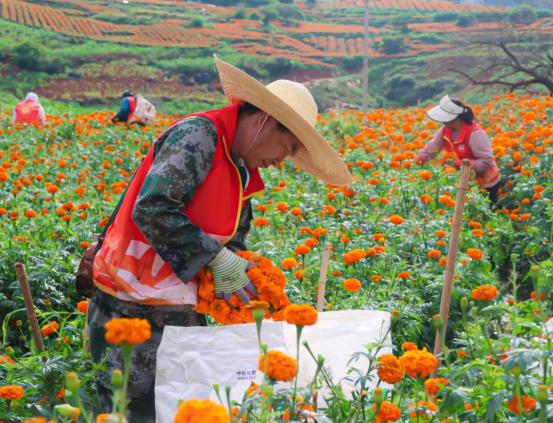 每一滴汗水都在滋养信任,每一次俯身都在夯实根基。党员干部扑下身子,与群众同围一垄地,同流一身汗。田间地头的辛劳,无声地消融着无形的隔阂。党群干群的纽带,在泥土的芬芳与共同的辛劳中,如万寿菊的根系般,进一步向深处牢牢扎紧。