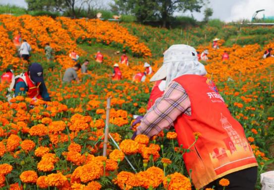 在采摘过程中,志愿者还积极主动与王云龙一家亲切交流,了解他们的生活状况和实际需求。助农收万寿菊,虽然只是一件小事,但却能让群众感受到党和政府的关怀与温暖。