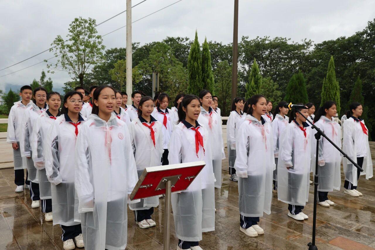 国歌唱毕,全体肃立,向革命烈士默哀。默哀毕,少先队员献唱《我们是共产主义接班人》,庄重表达赓续革命先辈光荣传统,当好共产主义接班人的远大志向。