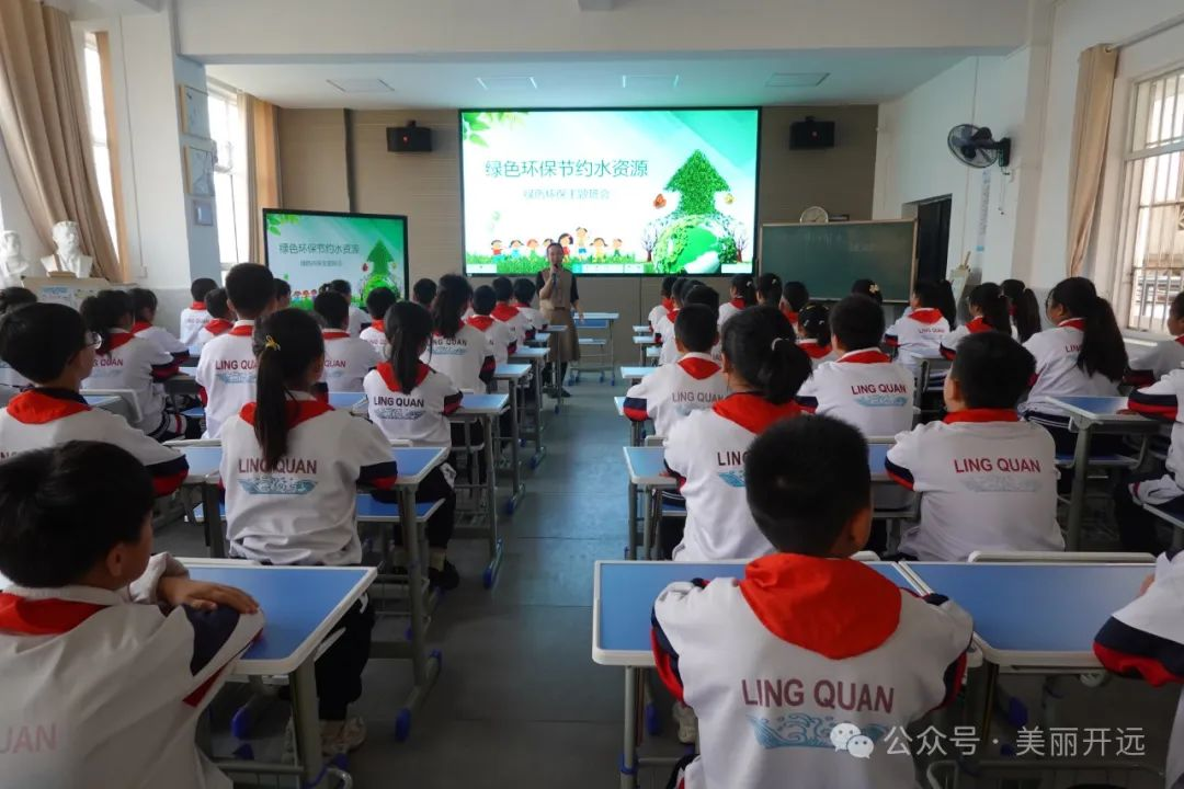 在课堂——在灵泉小学多媒体教室,正在开展节约用水主题班课。老师通过播放节水短视频,让学生直观地了解部分地区水资源的匮乏程度;用苹果切块的方式,生动地讲解海水和淡水的占比;互动式的节水知识问答,让大家更加深切地了解水资源对于人类的重要意义。课堂上,同学们纷纷化身“节水代言人”,积极分享生活中的节水小妙招。