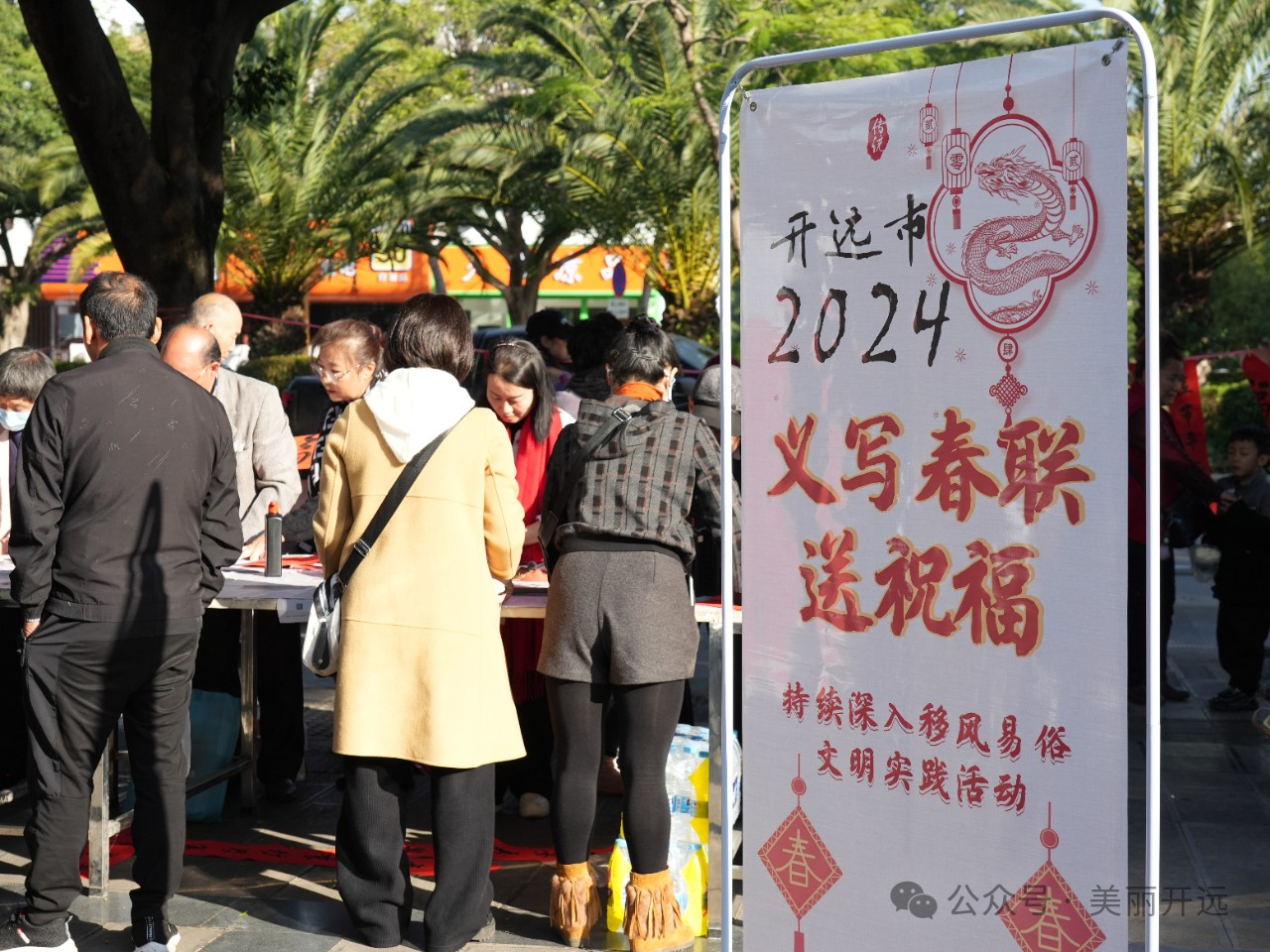 春节期间,开远市开展了丰富多彩的志愿服务活动,为广大市民提供高质量的文化产品,传承和弘扬中华优秀传统文化。