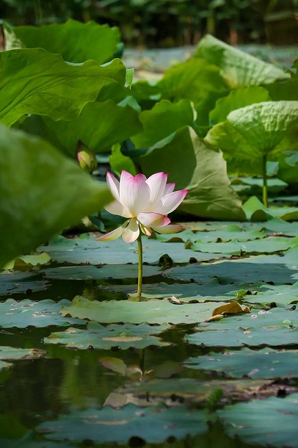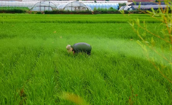 在南洞河带状湿地,荷叶连连,小桥流水、良田广袤,绿野无垠,自然景色和人造景观相得益彰,共同谱写生态和谐之美。