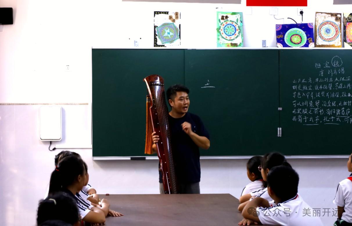 课堂之外的校园时间,学校还为学生准备了丰富多彩的文化活动。在课后社团活动教室中,同学们正在认真打磨古琴书签。通过古琴展示与动手制作相结合,大家纷纷感受到中华传统乐器的独特魅力。