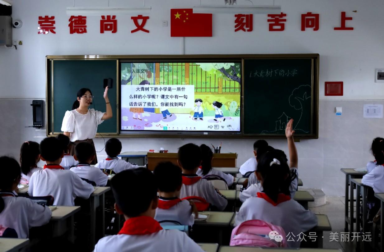 在东城小学三年级(9)班的教室里,孩子们正在语文老师的带领下,学习一篇名为《大青树下的小学》的新课文。文章用生动活泼的语言,描写了一所边疆小学中孩子们的学习生活,展现出祖国各民族间团结友爱的浓厚氛围。伴随着琅琅读书声,同学们一同“走进”这所热闹的学校,感受中华民族一家亲的温馨日常。