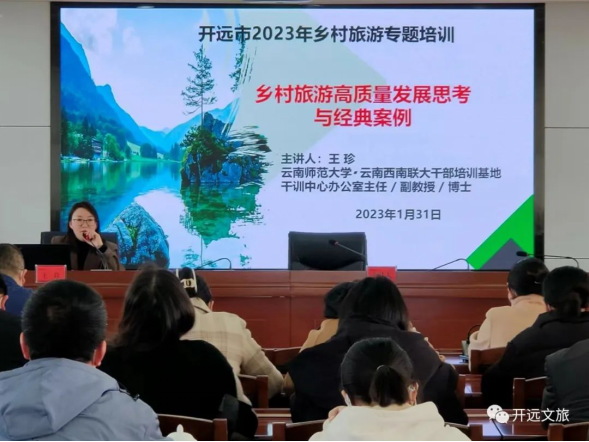 2023年1月31日,开远市乡村旅游专题培训班举办。此次培训旨在学习借鉴外县(市)先进乡村旅游发展经验,助推开远全域旅游提质增效,促进旅游高质量发展。各乡镇(街道)分管领导、文化站站长、乡村旅游重点村负责人及景区、酒店、旅行社代表等80余人参加培训。