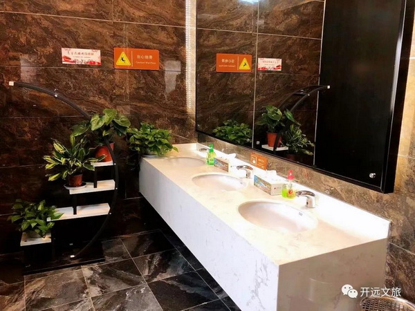 提升景区基础服务设施,展现景区文化内涵和人文关怀,开远严格按照国家A级旅游厕所标准及景区实际,全面改造提升景区的卫生间设施设备,从细节入手提升开远市的旅游服务品质。开远已建成的48座旅游厕所中,基本实现靠近厕所入口的无障碍厕位全覆盖,满足了特殊人群的如厕需求。“第三卫生间”也正在各大景区推广,凤凰生态公园、南洞景区、知花小镇等重点旅游景区均配备有第三卫生间,设置了儿童坐便器、置物台及高低两个洗手盆等设施,进一步改善了游客如厕环境,凸显了厕所人文关怀。目前,凤凰生态公园景区、南洞景区、知花小镇景区3个景区实现A级旅游厕所全面覆盖,AAA级、AA级高等级旅游厕所占比接近100%,并且所有厕所建筑与景区整体建筑风格、周边环境相互融合。开远的厕所革命从深化、优化服务,将厕所革命的动机从“为了卫生”转变为“为了舒适”。