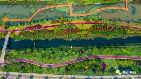 经过治理,南洞河流域水质明显改善、生态环境持续好转,犹如一条锦绣的绿带,两岸河堤林木葱郁、鲜花肆意、亭台水榭、流水潺潺。