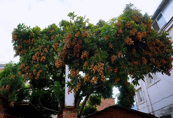 夏末秋初,走进灰土寨村,放眼望去,随处可见高大挺拔、遮天蔽日的龙眼树,茂密的龙眼树枝从古色古香的院子里伸出来,令人垂涎欲滴的龙眼挂满了枝头,如瀑布一般从高大的树枝上倾泻下来,挡住了门窗、覆盖了墙头、堆砌在瓦上、悬挂在藤架上,蔚为壮观。
