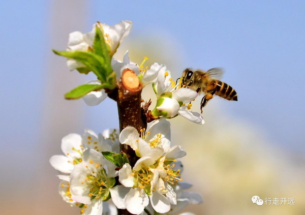 千树万树李花开,千只万只蜜蜂忙,不是雪景更胜雪景。