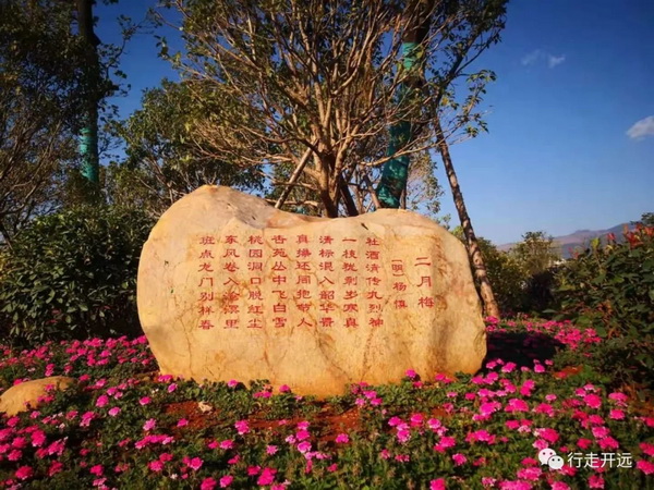 依托南洞河生态治理工程(带状湿地),200首“双百梅花诗”将全部呈现给市民,分别分布在沿线景石、拱桥、游路灯杆上,凸显开远文化特色。