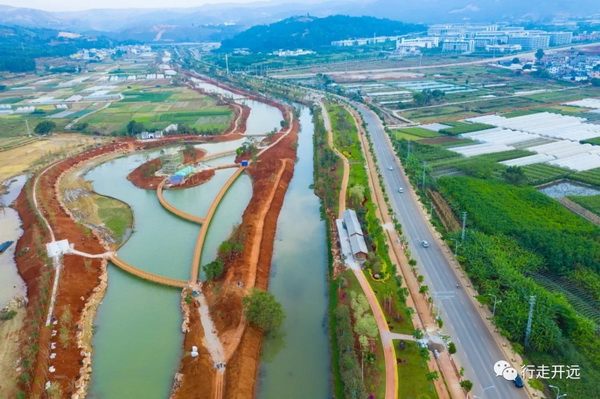 开远市南洞河生态治理工程全长2.56公里(昆河公路至通灵村),建设内容包括功能性湿地,南洞河两岸绿化种植(主要乔木种植含香樟、凤凰木、蓝花楹、垂柳等),5公里健康步道及广场,塔亭等建设。