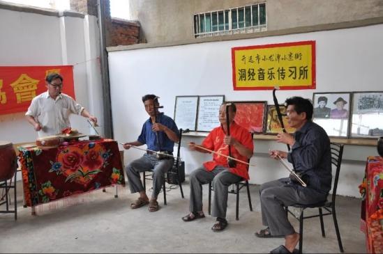 流传于小寨街的洞经音乐又俗称“长联乐谱”。主乐章由“九板”“十三腔”组成。洞经音乐分主祭生和司乐生。主祭生为洞经主持,司乐生为洞经音乐乐师,乐队由十人左右组成。