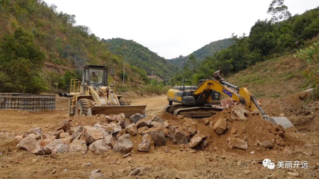 在中和营镇格勒冲泥石流治理工程项目施工现场,大型机械轰鸣,挖掘机不停地挥舞着“长臂”,工人们正奋战在各个作业面上,有条不紊地进行坝体模板安装等工作。