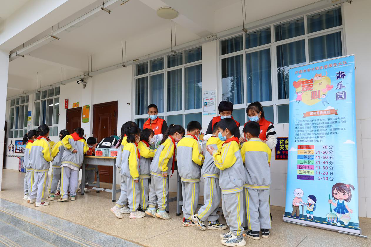 近日,开远市审计局志愿者结合持续开展的“爱心游乐园”关爱留守儿童成长志愿服务项目及开远市2022年倡导文明健康绿色环保生活方式主题活动,组织到羊街中心校杨柳小学开展“爱心游乐园”积分兑换成长 创意倡导环保主题活动,通过积分兑换奖品、创意手工等活动,丰富留守儿童的学习生活,并从小培养他们的环保意识。