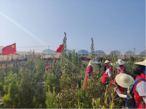 一抹抹红色的身影在一片绿色之中穿梭,显得分外鲜艳动人。大家充分发扬不怕苦、不怕累的苦干实干“老黄牛”精神,不畏炎热帮助农户打理花木。经过半天的努力,帮助农户抹芽4亩地,抢抓木百合生长萌芽黄金期,帮助农户解决抹芽时间紧人手不够的问题。
