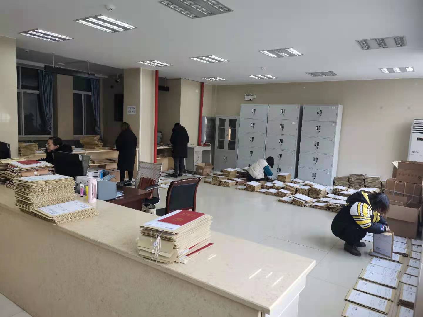 专班工作人员正在整理产权登记资料