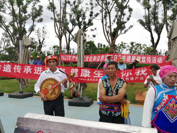 根据《文化和旅游部非物质文化遗产司开展2020年“文化和自然遗产日”非遗宣传展示活动的通知》要求,为大力弘扬中华优秀传统文化,坚定文化自信,积极引导全社会参与、关注和保护传承优秀传统文化的氛围,于6月13日上午,2020年开远市“文化和自然遗产日”主场活动在知花小镇隆重举行。活动的主题是:“非遗传承,健康生活”,口号是:“非遗产传承进万家,健康生活你我他”、“非遗代代传,健康常相伴”、“传承文化瑰宝,守护自然之家”,此次活动由开远市文化和旅游局主办、市文化馆承办、市文化馆羊街乡综合文化服务中心分馆协办,吸引观众650余人次。