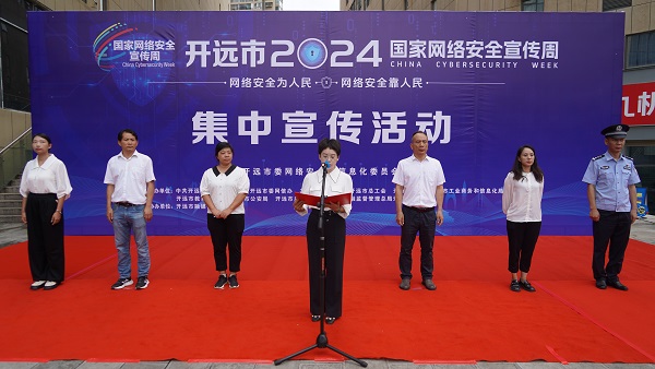 根据中央网信办的统一部署,按照省、州网信部门安排,9月11日,开远市2024年国家网络安全宣传周集中宣传活动在杰特广场举行。市委常委、市委宣传部部长、市委网信办主任李春芳参加活动并致辞。