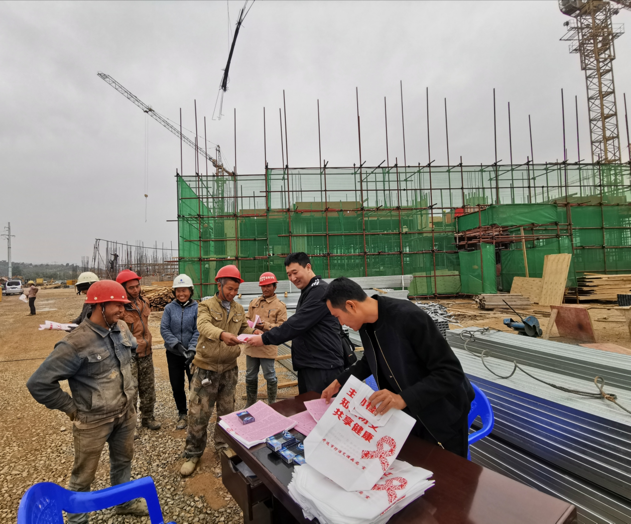 为充分调动全社会力量,广泛、深入、持久地做好艾滋病防治宣传教育,进一步扩大工作覆盖面,提高宣传教育的针对性和实效性,不断增强群众的自我保护意识和自觉抵制、防范艾滋病的能力,切实遏制艾滋病的传播和蔓延。在开远市2019年第32个世界艾滋病日暨艾滋病防治进村寨宣传月活动期间,市人社局在使用农民工较多的某建筑工地开展以“社区动员同防艾,健康中国我行动”为主题的防艾宣传活动,倡导大家合力抗艾,共担责任,共享未来。
