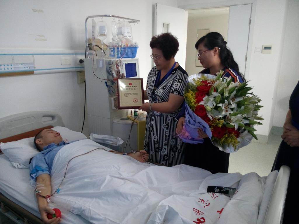 在汪海超捐献造血干细胞当天,很多志愿者不约而同从不同的地方赶来,手捧鲜花,为他加油。省红十字会副会长潘晓玲到现场看望、慰问了他。潘副会长对他的捐献给予了充分肯定和高度评价。