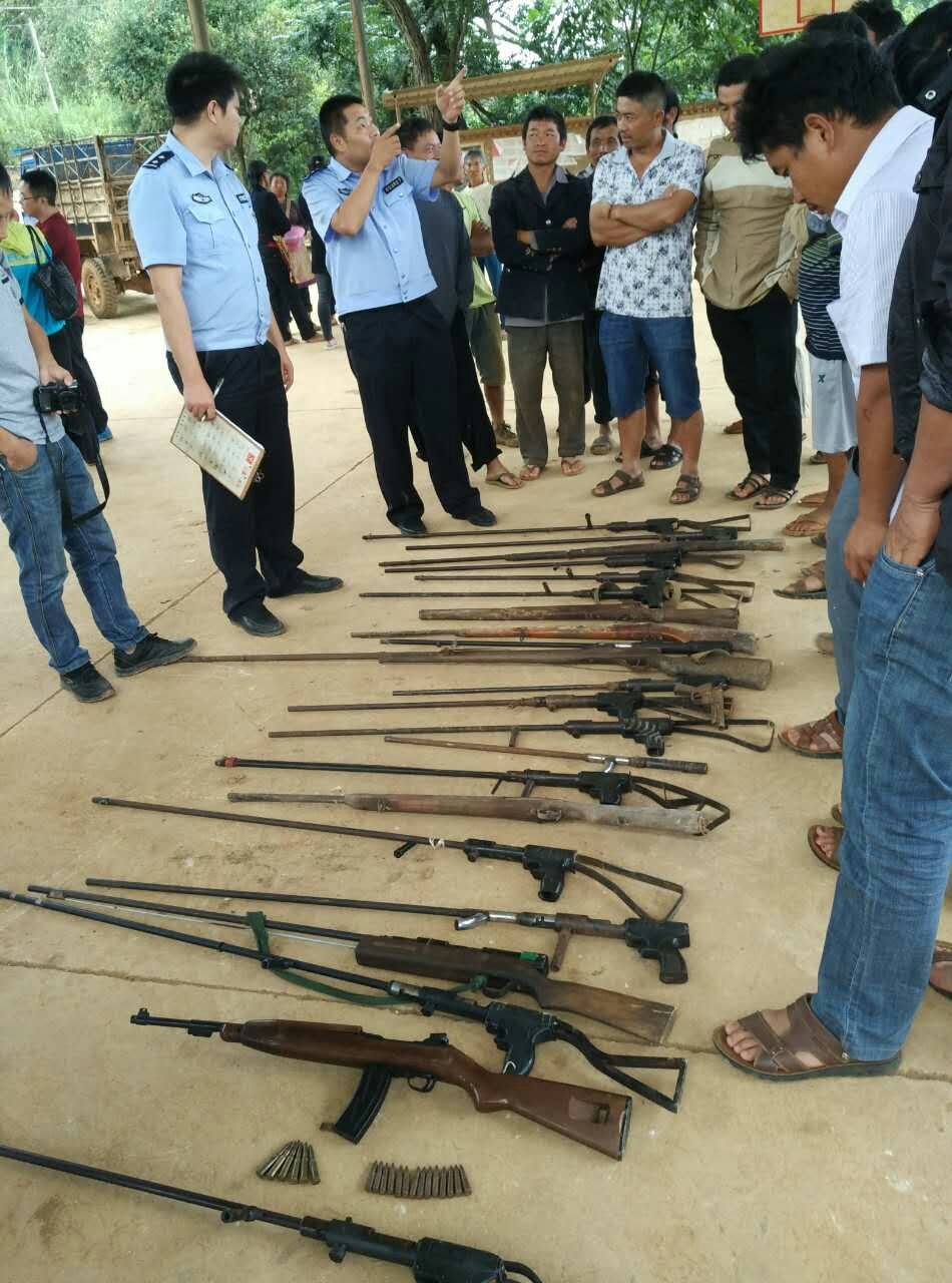 市公安局自8月初开展缉枪治爆专项行动以来,灵泉街道办事处和西城派出所积极组织人员、警力深入辖区,尤其是西山片区进行宣传,向村民讲解私藏枪支弹药的危害,宣传法律法规。8月22日下午,鲁那村的村民主动上交了4支火药枪,灵泉街道办事处工作人员按每支枪100元给予村民补偿。在此之前,8月19日,灵泉街道办事处三台铺村委会田房村、老邓耳村有30名群众主动联系民警上交枪支弹药。经民警清点,共有硝铵炸药9公斤、雷管1枚、军用子弹20发,火药枪8支(包括短火药枪2支)、射钉枪22支,仿真枪1支。