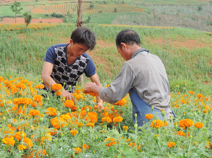 为方便群众就近交花,开远博浩生物科技有限公司在西山片区一共设置了老邓耳、德果、份玉3个万寿菊鲜花收花点。2016年,万寿菊鲜花收购价调整为每公斤1元,比去年增加0.1元,预计今年仅西山片区可收购鲜花19500吨,为花农创收1950万元。