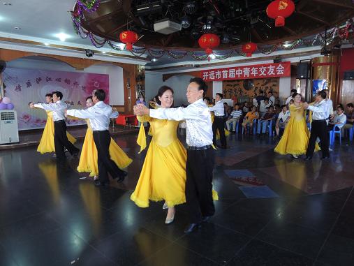 音乐戛然而止,1号男嘉宾大声介绍:“我来自开远,能够参加此次交友活动,非常高兴,我的交友格言是,创业路上有你,我会更有激情……”大家一一自我介绍之后,男女嘉宾排成几排,男方邀请自己心仪的女士走向舞池,成双结对,翩翩起舞。音乐声中,主持人大声鼓励大家:“放下架子、放下面子,还原你的本真,展现你的潇洒,敞开你的心扉;结交优秀朋友,拓展生活空间;提高生活质量,憧憬美好人生。”