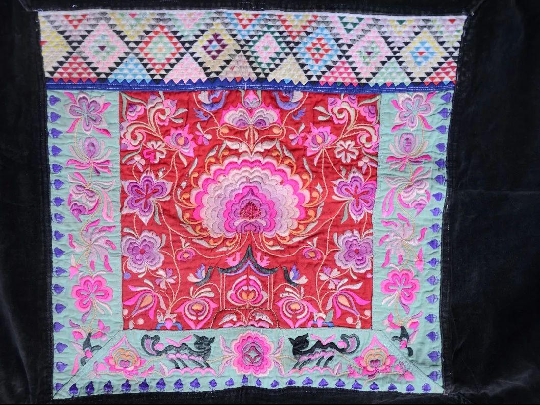剪纸绣工艺主要用于衣服、鞋帽、背被、围腰等日常穿戴用品绣制。构图神话思维鲜明,将彝族传统神树崇拜作为构图主线,把世间毫不相干的花卉、动物、人物、建筑,夸张地构思为神树开的花、结的果。并按照技艺传承者的意愿,让神树“结”成不同寓意的吉祥图案,使每一幅剪纸绣,都是一个活形态的神话。该项目于2015年被红河州人民政府命名为州级非物质文化遗产代表性保护项目名录。