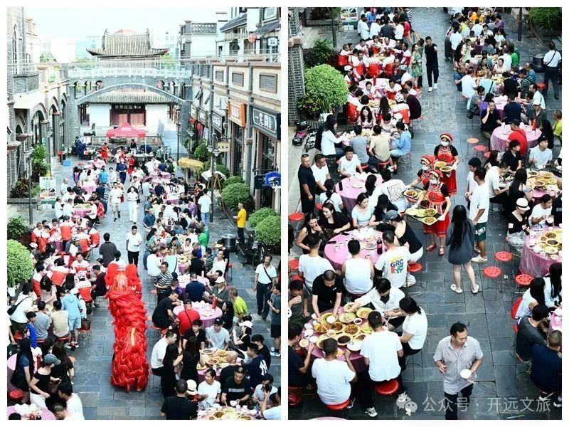 长街宴成为一大亮点。步入长街宴现场,一幅绚丽多彩的画卷徐徐展开。舞狮助阵,营造出热烈而欢快的氛围。整齐排列的桌椅沿着南正街主题街区蜿蜒延伸,宛如一条气势磅礴的长龙,工作人员身着精美的节日盛装,面带微笑,热情洋溢,以最诚挚的态度迎接每一位客人,耐心地为每一位客人介绍特色菜品,贴心地为他们推荐合适的菜肴,让食客感受到宾至如归的温暖。