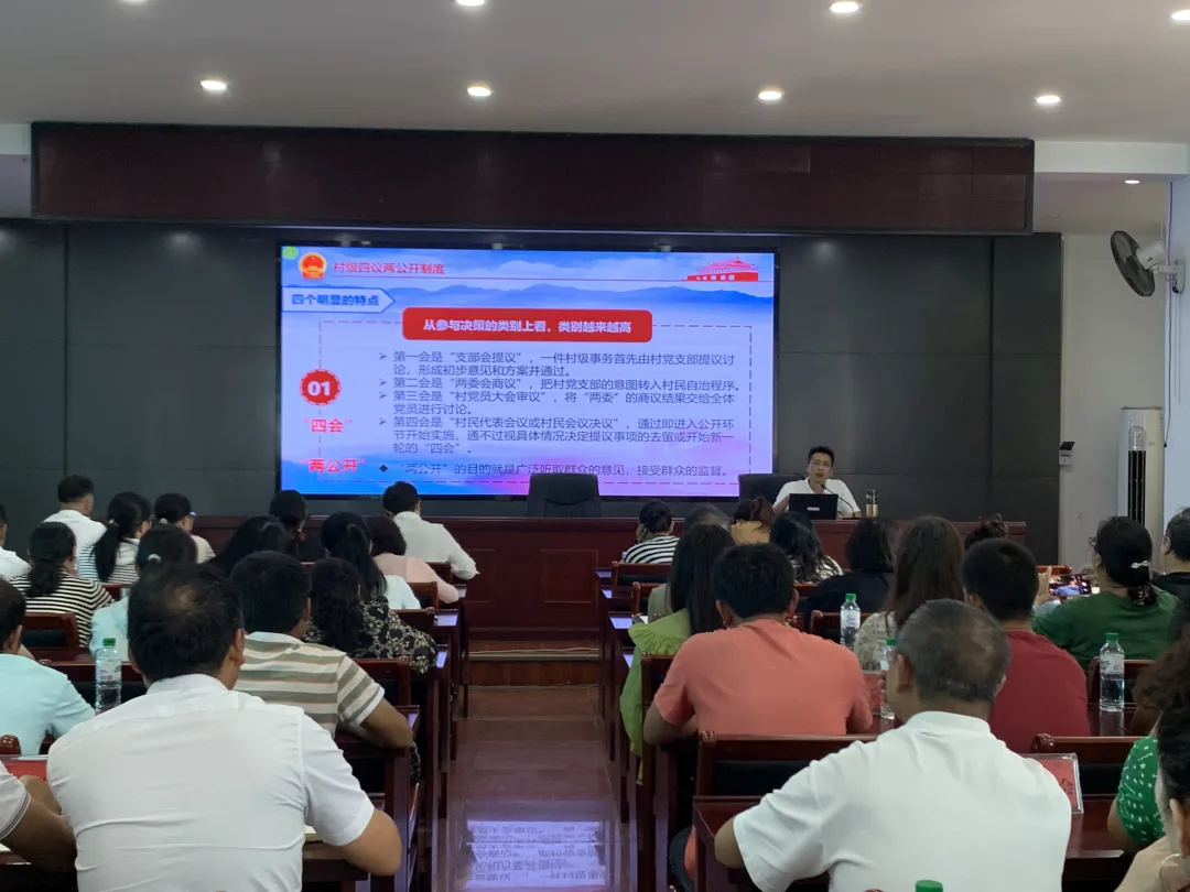 街道党工委委员、组织委员雷光亮就村级“四议两公开”制度及“三重一大”监督管理的事项进行培训。