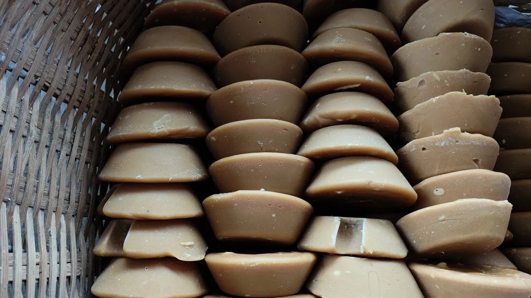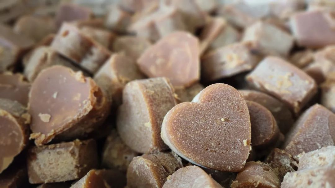 红糖的原料是甘蔗,古法是将收割下来的甘蔗经过碾压,压榨出来的汁液先去除泥士、细菌、纤维等杂质,接着以小火熬煮5—6小时,期间不断搅拌水分慢慢蒸发,使糖的浓度逐渐增高,再将高浓度的糖浆倒入模具,待冷却后便会凝固成为各式各样形态的块状糖砖。这样的传统做法保特了甘蔗原本的营养,同时也使红糖带有一股类似焦糖的特殊风味。