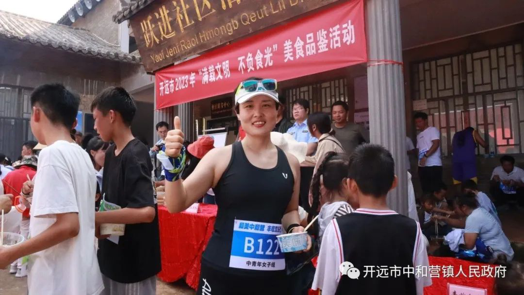 马拉松结束后,参赛选手们以及前来参观的游客集中在跃进社区小广场品尝中和营当地美食小吃,感受农忙一年的丰收成果,体验中和营特有的美味。