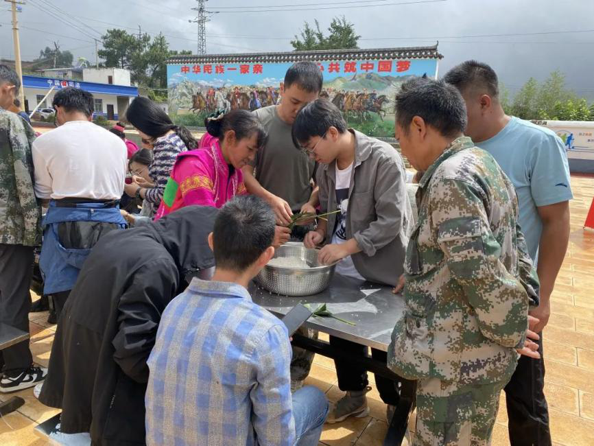 为了继承和发扬中华民族优秀传统文化,营造欢乐祥和、文明健康的节日氛围,进一步丰富碑格乡辖区群众以及机关干部职工的精神文化生活,厚植传统节日情怀。近日,碑格乡举办主题为“端午粽飘香 欢聚庆佳节”的文化实践活动,碑格村的妇女和机关干部职工一同来到碑格乡民族团结文化广场,进行一场包粽子的活动。