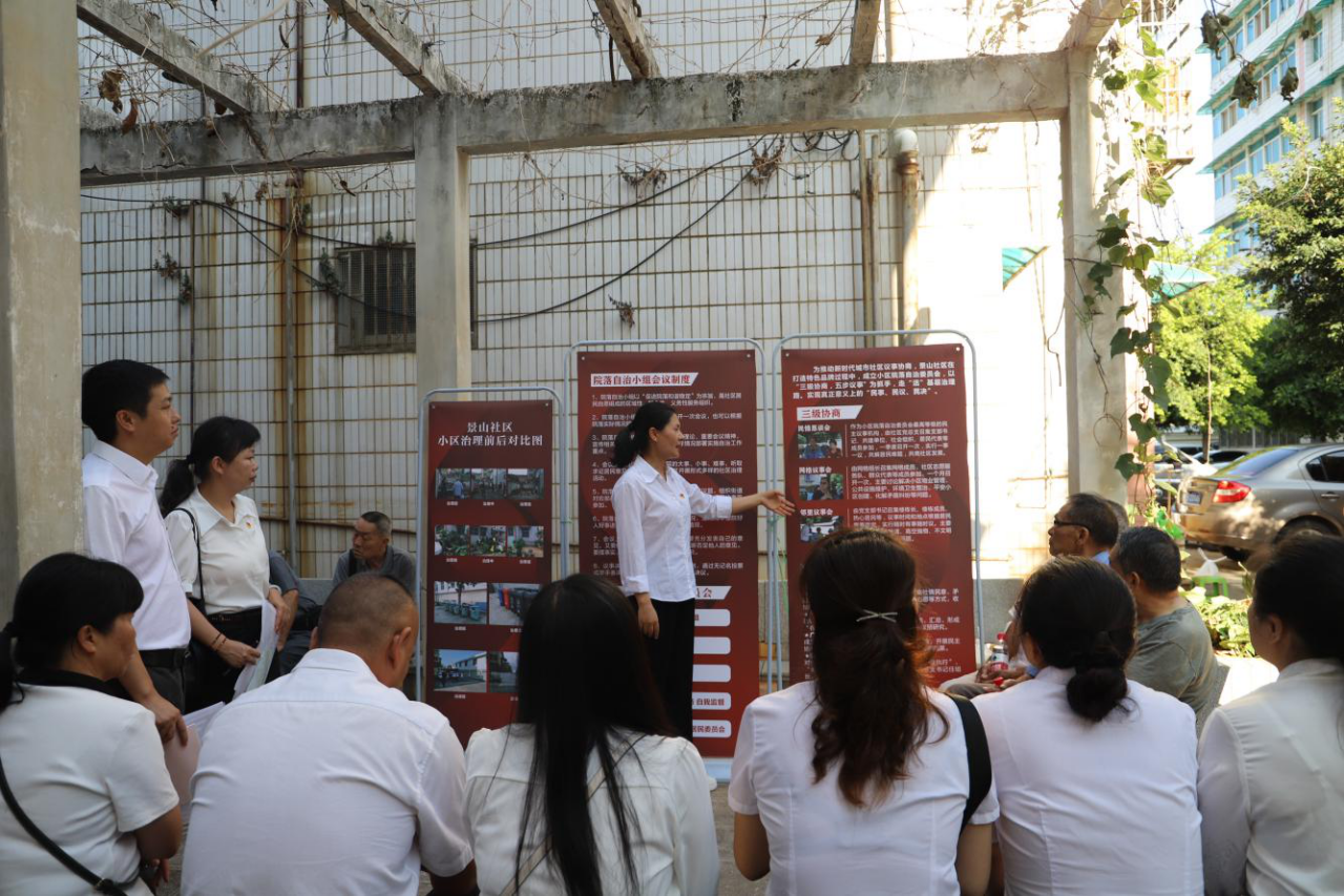 此次“擂台比武”赛区分别设在乐白道街道下辖的7个城市社区。活动中,来自景山、临江、凤凰等社区的党总支书记通过实地讲解、PPT汇报等形式,围绕院落坝会、社区大党委、人居环境提升、活动阵地打造、老旧小区治理等内容,就社区基层治理工作中的亮点特色进行了交流比拼。