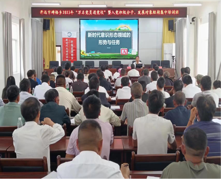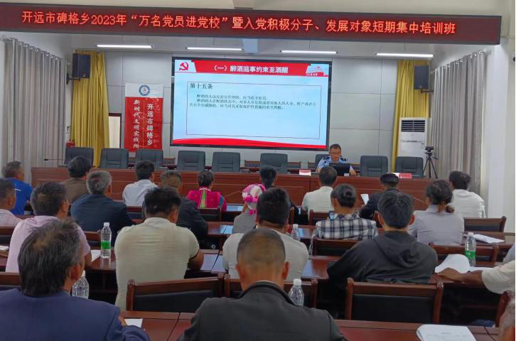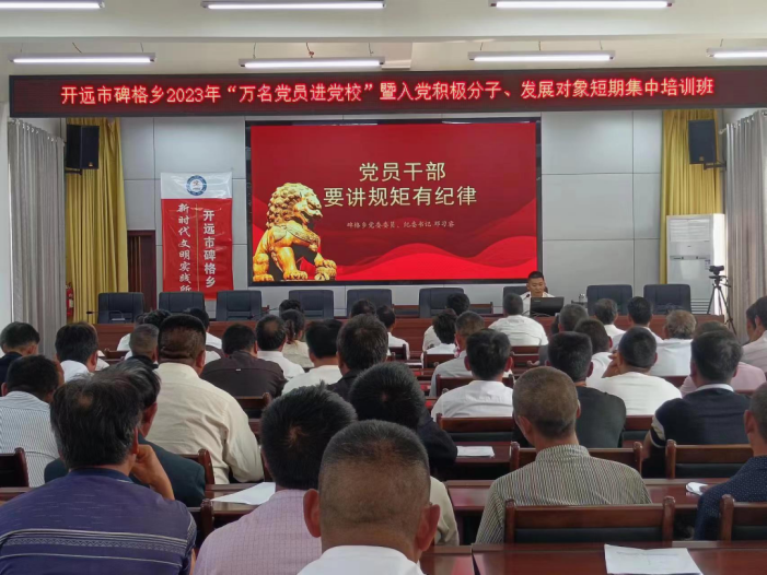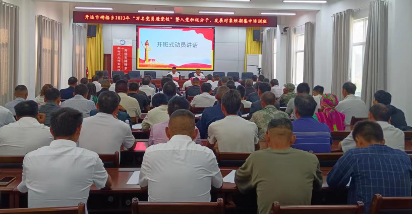 为持续深入学习贯彻习近平新时代中国特色社会主义思想,把广大党员的思想和行动切实统一到党的二十大重大决策部署上,进一步提高碑格乡基层干部政治理论素养和综合能力水平。4月17日至19日,碑格乡在乡党校举办2023年度“万名党员进党校”暨入党积极分子、发展对象短期集中培训班,全乡各村党支部书记,组长、副组长中的党员,入党积极分子和发展对象共计100余人参加此次培训。