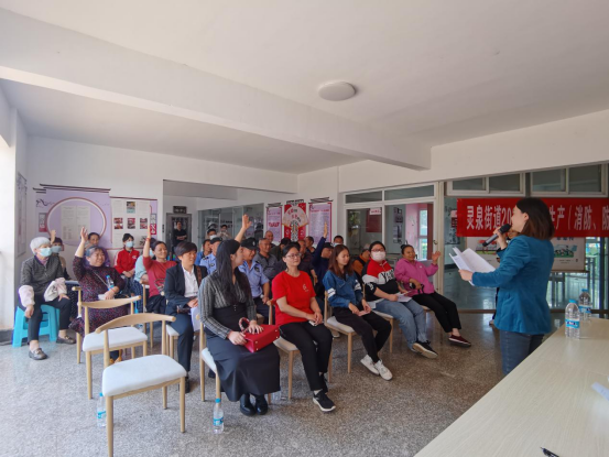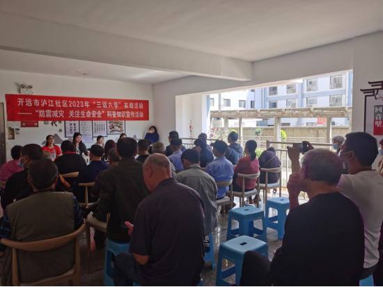 本次活动由地震局张惠菊科长对居民讲解地震相关知识,包含地震产生的原因、地震造成的危害、举例说明不同等级的地震、遇到地震如何逃生以及地震前会有哪些异常的自然现象等。