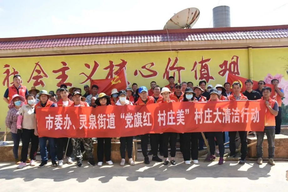 为加强农村周边的环境卫生整治,提升村庄生态文明,树立文明村镇新形象,引导群众养成良好的生活卫生习惯,推动村庄环境从干净整洁向生态宜居转变,3月31日,市委办、灵泉街道携手开展“党旗红村庄美”村庄大清洁行动。