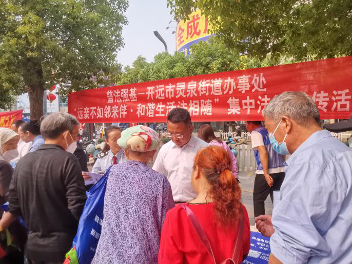 4月7日,灵泉街道在衡泰广场开展“远亲不如邻来伴·和谐生活法相随”为主题的普法强基补短板集中法治宣传活动。省、州、市普法强基补短板专项行动工作队参与到宣传活动中,形成了四级联动的法治宣传氛围。