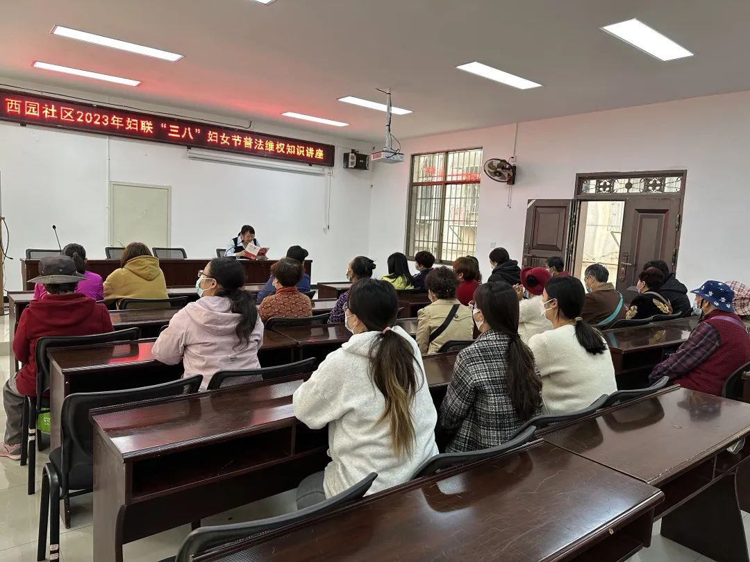 3月7日,西园社区妇联开展“巾帼心向党 奋进新征程”主题活动,上午组织妇女干部到美丽西山白打村,在梨花树下,学理论、学文化和话感恩、话团结,下午组织社区妇女群众开展普法维权知识讲座。此次活动以丰富多彩的形式提振妇女精气神、展现巾帼新气象,让社区广大妇女度过一个欢乐而有意义的节日。